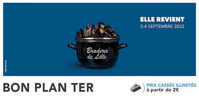 Le meilleur moyen de se rendre à la Braderie de Lille en venant de l’extérieur de la métropole lilloise ? Venez en TER Hauts-de-France ! A cette occasion, la SNCF propose des petits prix à 2€, 5€, 10€, 15€ ou 20€ par personne et par trajet, au départ d’une gare de la région Hauts-de-France à destination de Lille. A noter que les billets sont valables le 03 ou le 04 septembre 2022, non échangeable, non remboursable.