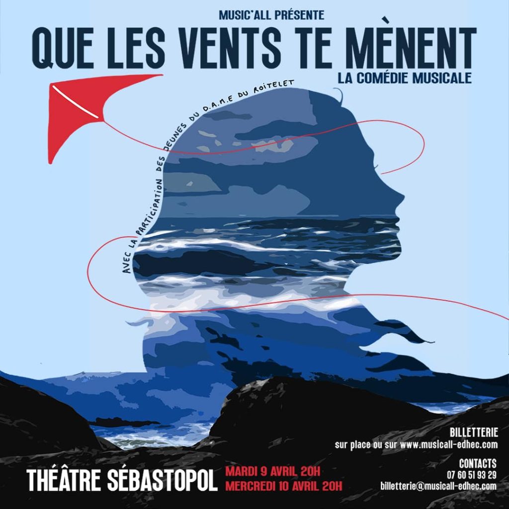 Mardi 09 & mercredi 10 avril 2024 à 20h, le Théâtre Sébastopol de Lille accueillera la comédie musicale de l’association Music’All « Que les vents te mènent ».
