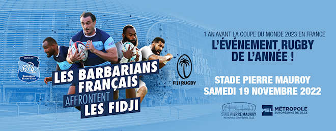 Dans le cadre de la fenêtre internationale de novembre, les Barbarians Français affronteront les Fidji lors d’un test match le samedi 19 novembre 2022 au Stade Pierre-Mauroy de Lille.