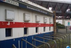 Comme en témoignent nos photos de 2009, le panneau électronique pour l’affichage des scores était toujours présent, ainsi que les éclairages, les caméras, les panneaux d’indications et d’affichages, les sponsors… comme-ci la vie de ce stade s’était arrêtée du jour au lendemain.