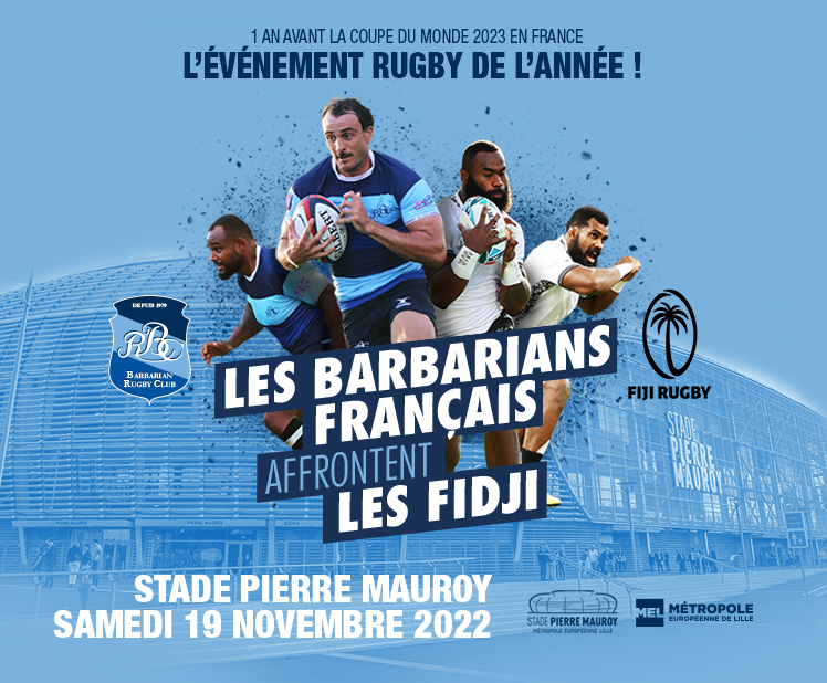 Dans le cadre de la fenêtre internationale de novembre, les Barbarians Français affronteront les Fidji lors d’un test match le samedi 19 novembre 2022 à 15h à la Decathlon Arena – Stade Pierre Mauroy.