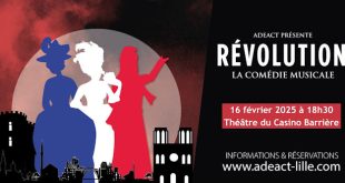 Dimanche 16 février 2025 à 18h30, le Théâtre du Casino Barrière Lille accueillera la Comédie Musicale « Révolution » ! Comédie Musicale « Révolution »« PARIS 1789 : Victime d’une famine meurtrière, le Peuple souffre. Ni le Roi, ni ses ministres ne parvenant à y faire face, un mouvement nouveau s’empare de la France : c’est la Révolution ! Les privilèges sont abolis, l’égalité consacrée et la monarchie …
